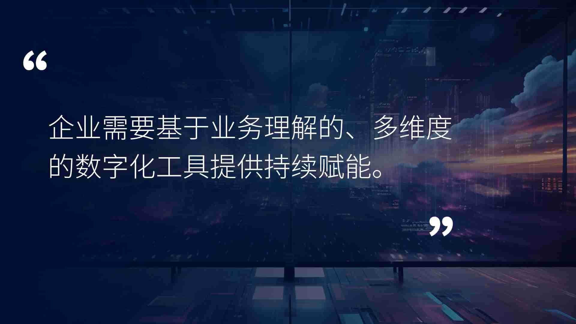 • 对于企业而言,,数字化战略就是企业的发展战略,,AI驱动的数云融合既是壹号平台数码对于企业数字化转型的战略愿景解构,,也是壹号平台数码自身的数字化战略布局。。